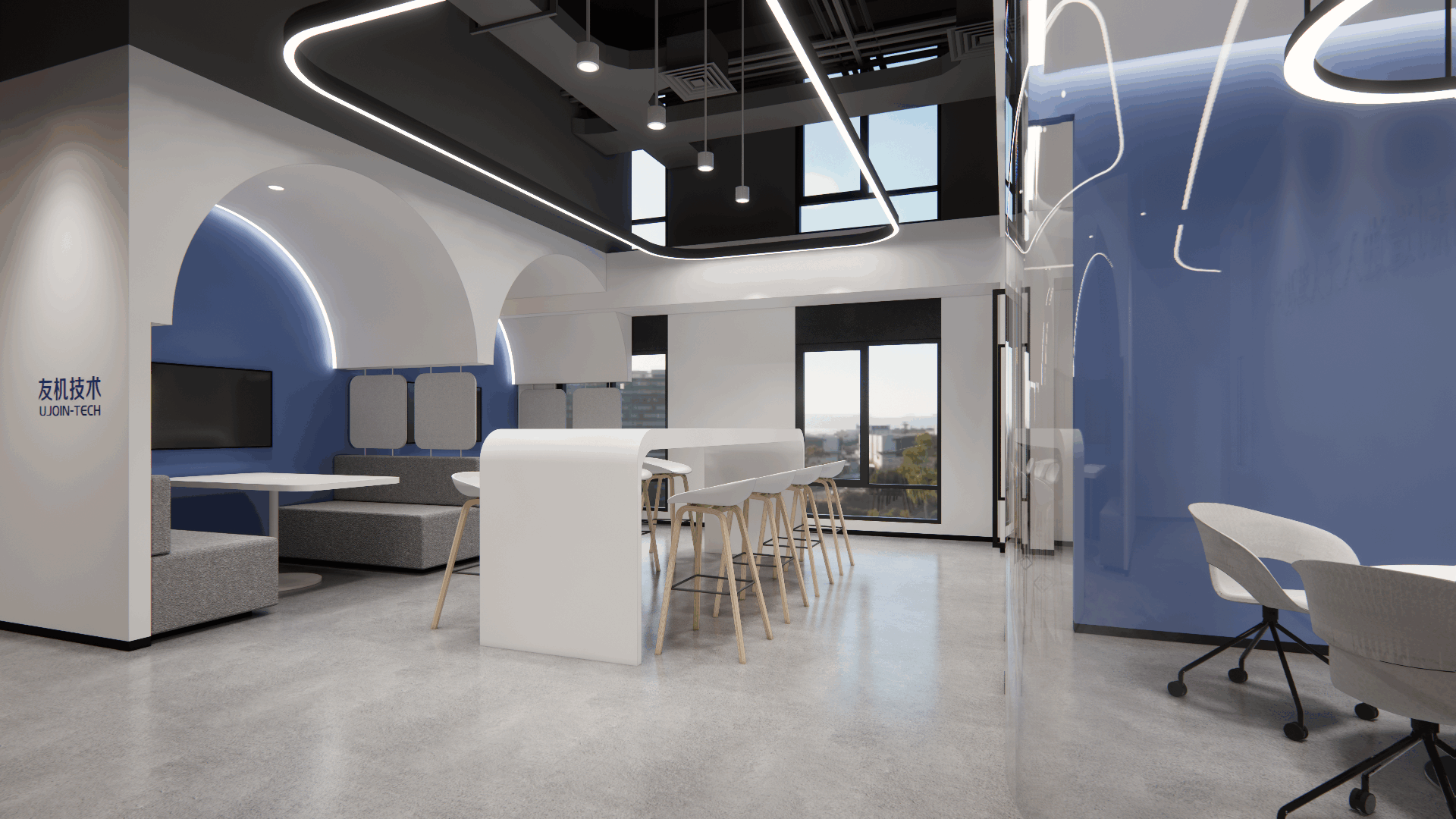 友機技術辦公室設計裝修的空間布局合理,色彩明亮,既保證了工作的高效性,又營造了輕松愉悅的工作氛圍。設計細節處處體現科技感,彰顯公司行業特色。
